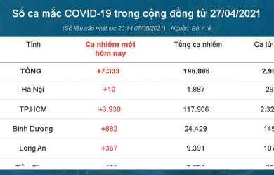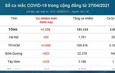 Bộ Y tế vừa công bố 3.539 ca nhiễm ghi nhận trong nước, nâng tổng số ca trong ngày lên 7.333 ca. Trong ngày, Việt Nam cũng ghi nhận 4.305 bệnh nhân khỏi bệnh. Tính …