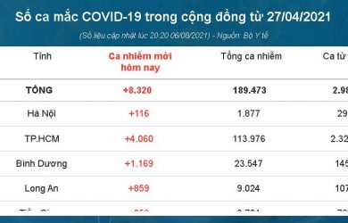 Bộ Y tế vừa công bố 4.311 ca ghi nhận trong nước, nâng tổng số ca nhiễm trong ngày lên 8.320 ca. Trong ngày, Việt Nam có 4.292 bệnh nhân được công bố khỏi bệnh. …