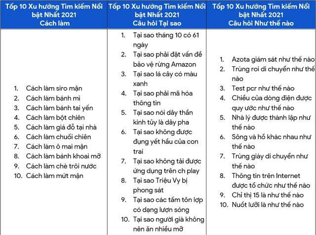 TOP 10 xu hướng tìm kiếm nổi bật nhất 2021 về cách làm